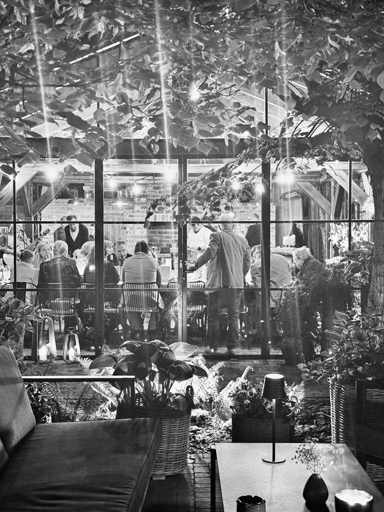 „Posmakuj Potaśni” to nie restauracja w klasycznym rozumieniu. To intymna przestrzeń – zadaszona oranżeria z przeszklonymi ścianami, przez które ogród zdaje się wlewać do wnętrza, dzieląc się swoją zielenią, światłem i spokojem. Biesiadne stoły ustawione wspólnie zachęcają do rozmów i wymiany wrażeń. Tuż obok – otwarta kuchnia, gdzie dzieje się magia. Z ogrodu dobiega zapach dymu z palącego się ogniska, a tło muzyczne tworzy grająca na żywo gitarzystka. Jest kameralnie, ale nie onieśmielająco. Ciepło i autentycznie.