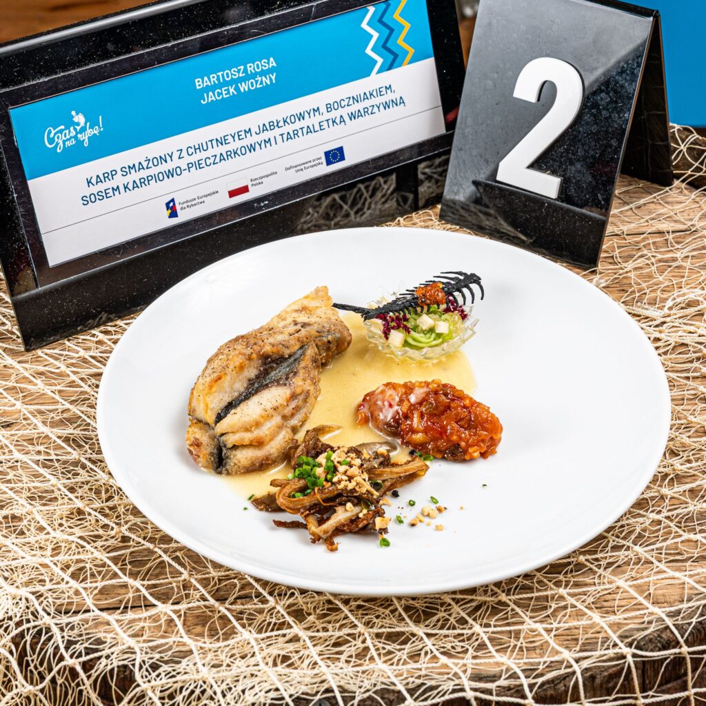 z potrawą: Karp smażony z chutneyem jabłkowym, boczniakiem, sosem karpiowo-pieczarkowym i tartaletką warzywną Gratulujemy Wygranym!