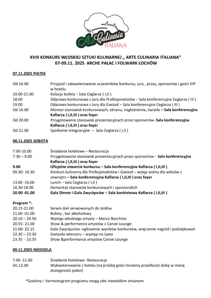 XVIII Konkurs Włoskiej Sztuki Kulinarnej „Arte Culinaria Italiana”–