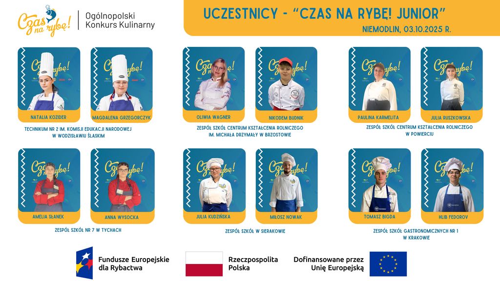 Znamy już uczestników, którzy powalczą o tytuł autora najlepszej potrawy z karpia opolskiego! W obu kategoriach – uczniowie i kucharze – do rywalizacji przystąpi sześć dwuosobowych drużyn.