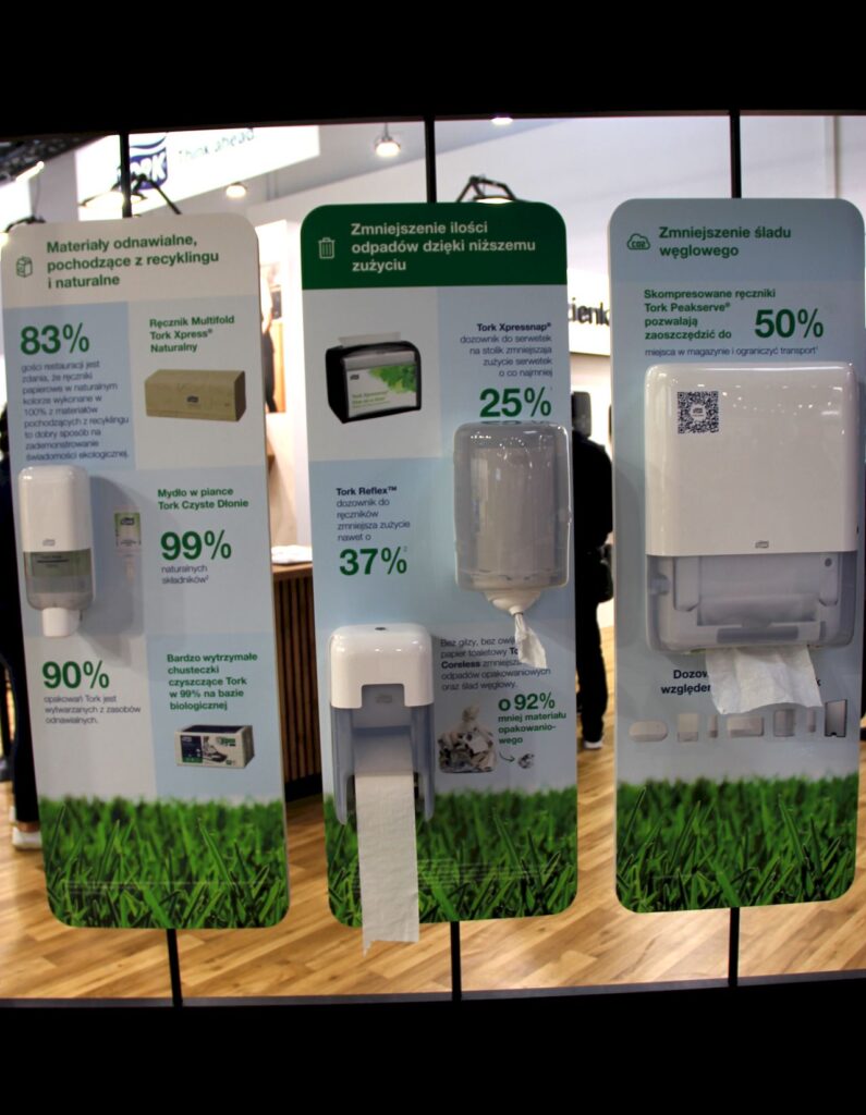 Tork konsekwentnie rozwija także ofertę produktów w obszarze zrównoważonego rozwoju. W portfolio znajdują się rozwiązania z linii „natural” , obejmujące m.in. ręczniki i serwetki wykonane z materiałów o ograniczonym wpływie na środowisko. Produkty te są kierowane do obiektów gastronomicznych, które wdrażają strategie ekologiczne lub komunikują proekologiczny charakter swojej działalności.