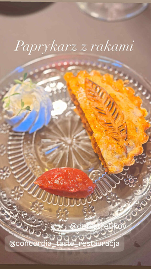 Podczas wieczoru gościem specjalnym była Lara Gessler, która poprowadziła rozmowę na temat doboru win do potraw serwowanych podczas kolacji. Jej refleksje, osadzone w doświadczeniu kulinarnym i rodzinnym dziedzictwie, były subtelnym dopełnieniem wieczoru – nie dominującym, lecz inspirującym.