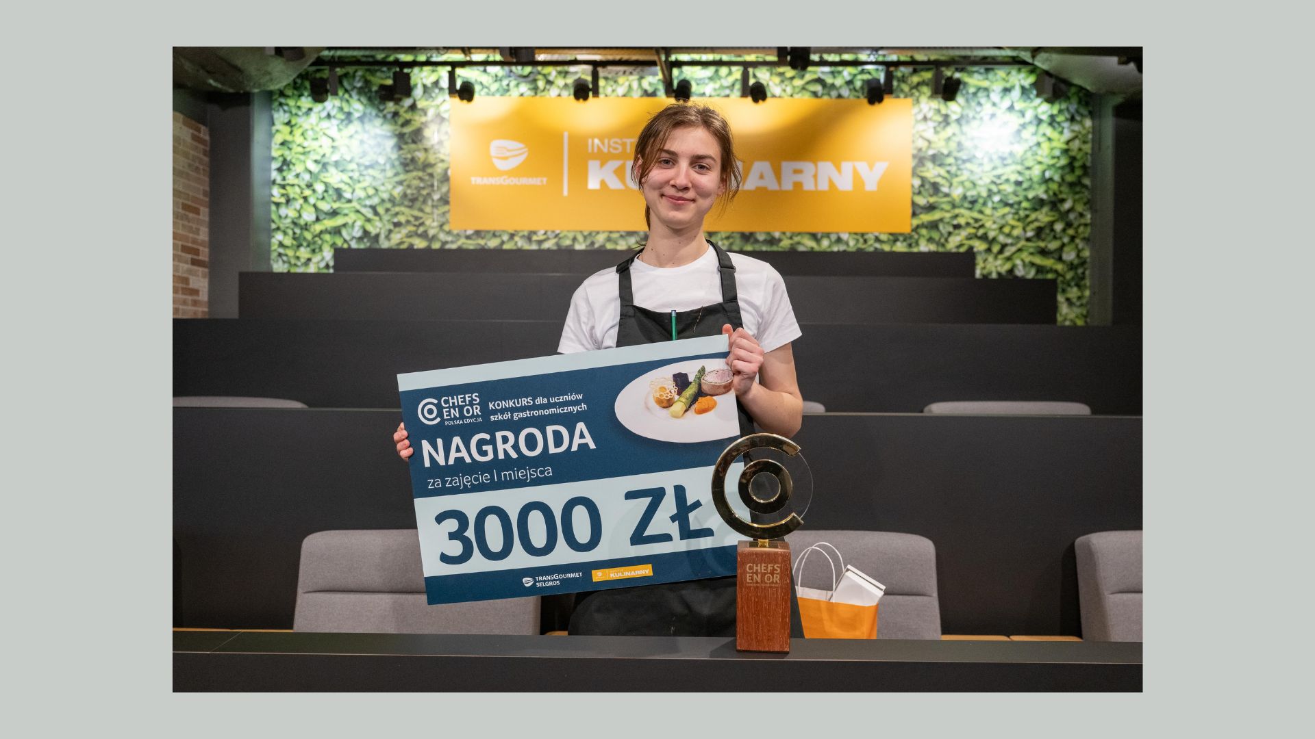 Laureatka I miejsca otrzymała nagrodę finansową w wysokości 3000 zł oraz profesjonalne szkolenie w Instytucie Kulinarnym Transgourmet. Szkoła zwycięzcy otrzymała bon o wartości 5000 zł na zakupy w Selgros oraz możliwość zorganizowania szkolenia grupowego. Dla pozostałych finalistów i ich szkół również przewidziano atrakcyjne nagrody. Dodatkowo trójka zwycięzców została zaproszona na trening Narodowej Kadry Kucharzy Polski.