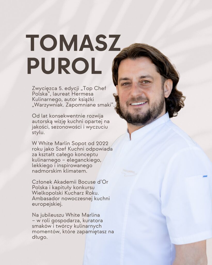 • Tomasz Purol – szef kuchni White Marlin, którego wizja kuchni morskiej wyznacza nowe standardy fine diningu.