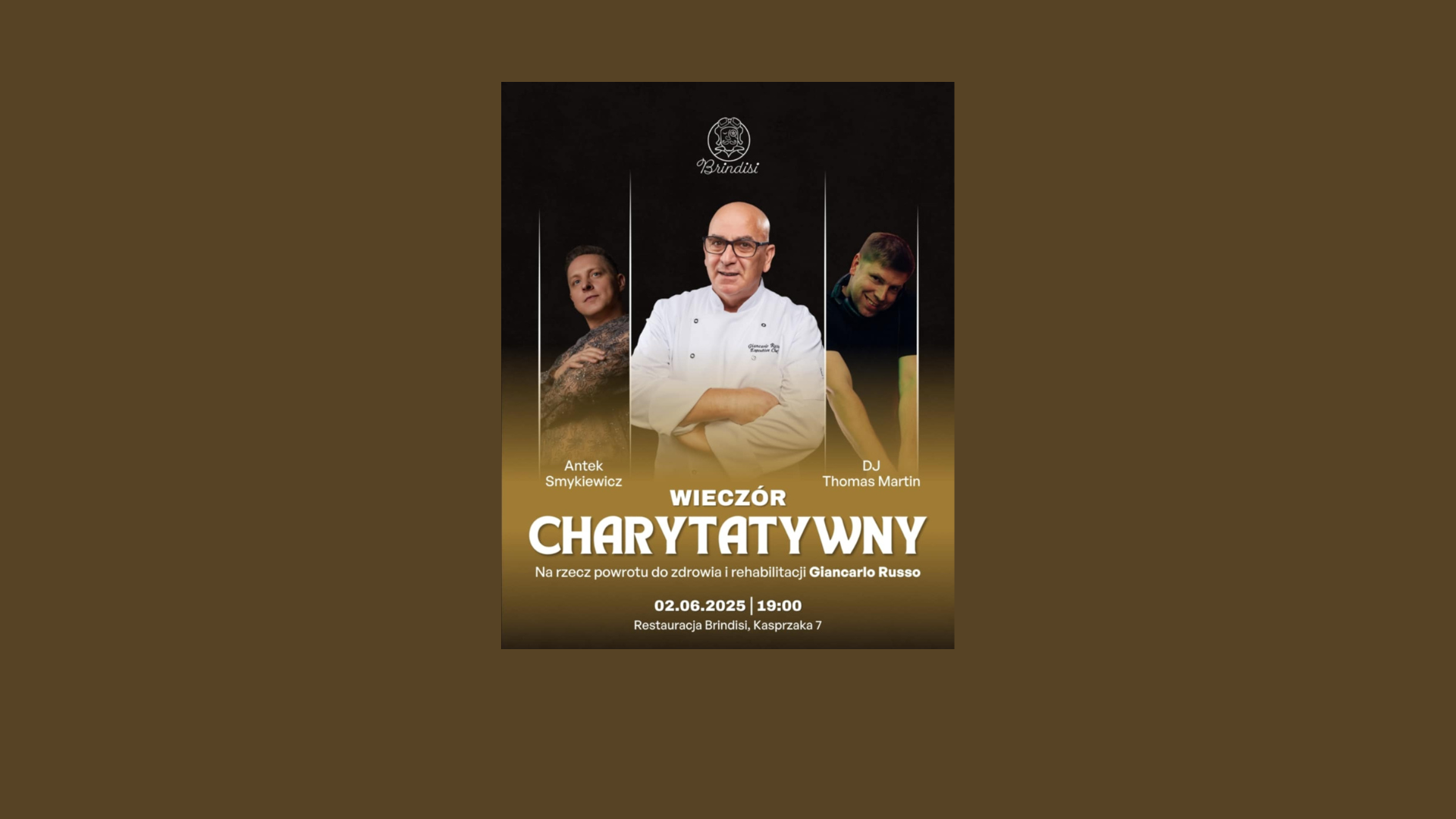 02 czerwca 2025 r. w Restauracji Brindisi odbędzie się wyjątkowy Wieczór Charytatywny na rzecz Giancarlo Russo – postaci doskonale znanej i cenionej w naszym środowisku. Giancarlo, człowiek-legenda, obecnie zmaga się z trudnym okresem po poważnej operacji i długim pobycie w szpitalu. Dzięki sile i determinacji udało mu się „oszukać przeznaczenie”, jednak dalsze leczenie i rehabilitacja są długotrwałe i kosztowne.